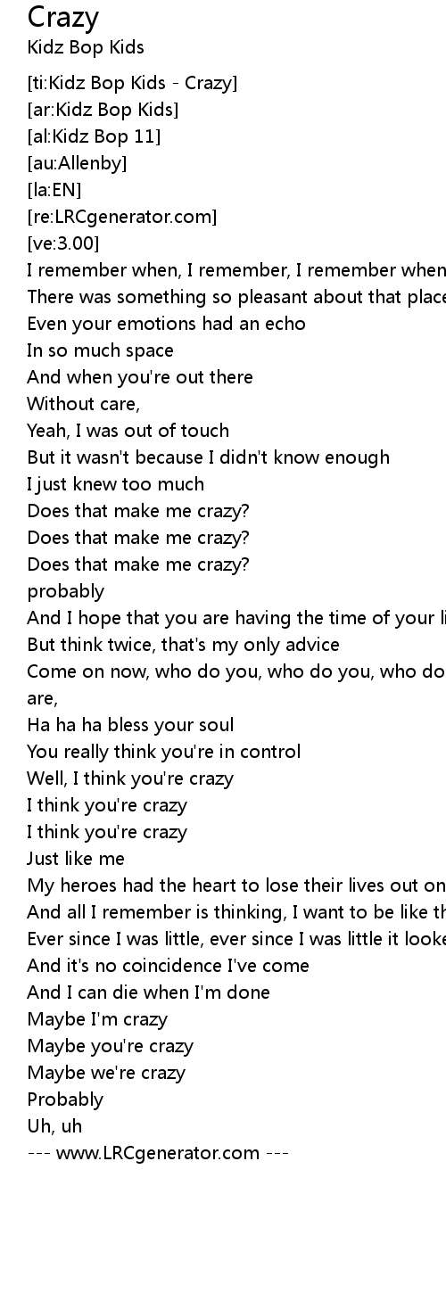 [ti:Kidz Bop Kids - Crazy]
