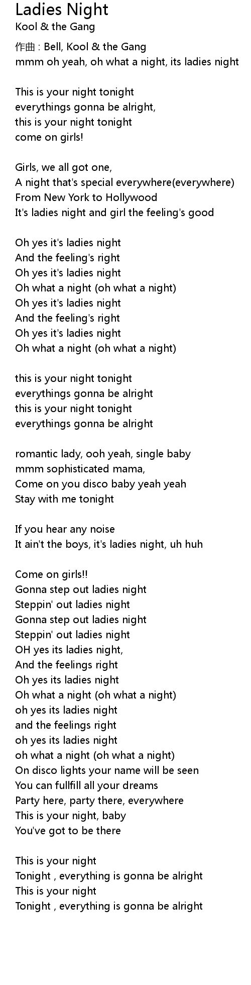 | It's ladies night and girl the feeling's good | |