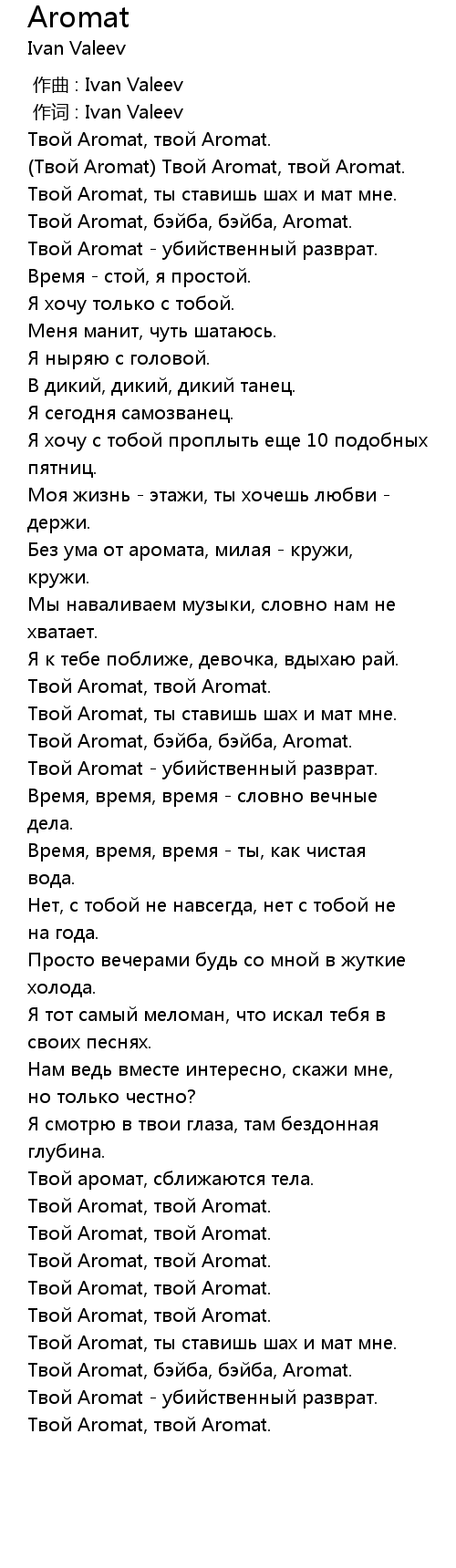 (Твой Aromat) Твой Aromat, твой Aromat. |