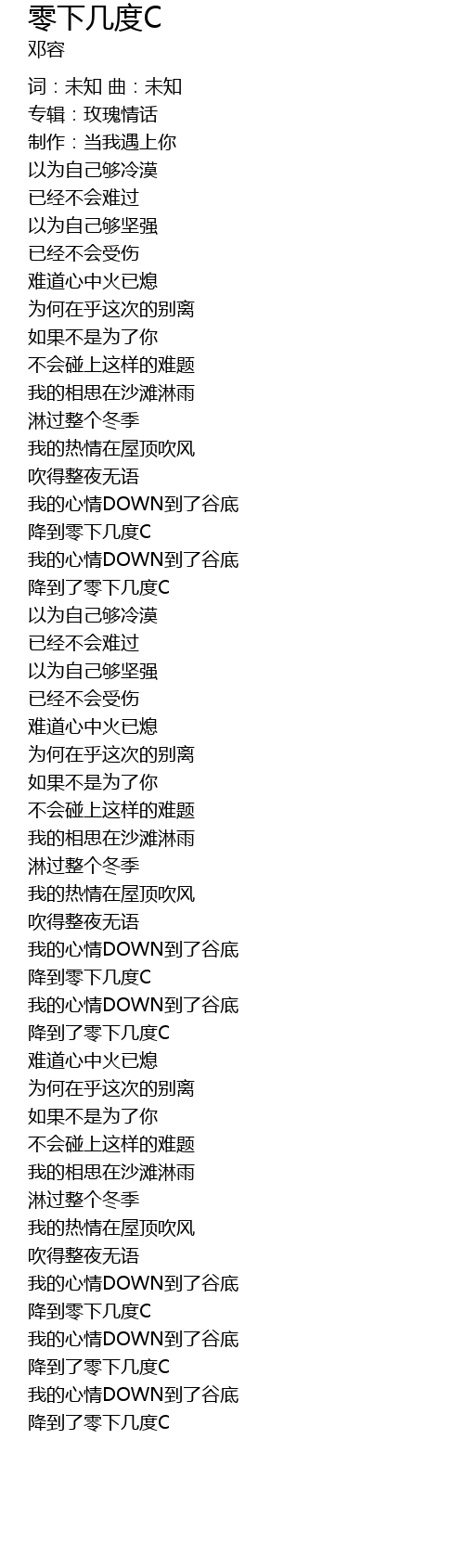 | [00:02.720] | 杨林-零下几度C词:未知 曲:未知 |