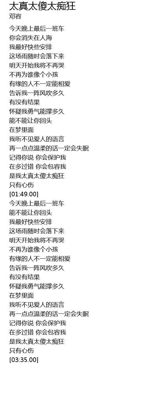 | [01:37.00] | 是我太真太傻太痴狂 |