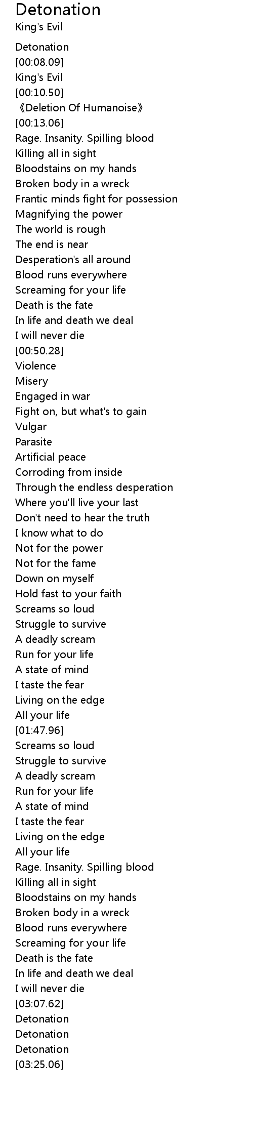| [00:20.89] | Rage. Insanity. Spilling blood |