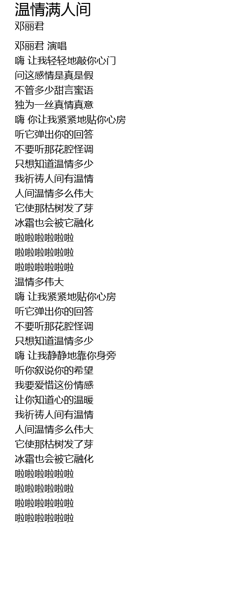 | [00:05.00] | 邓丽君 演唱 |