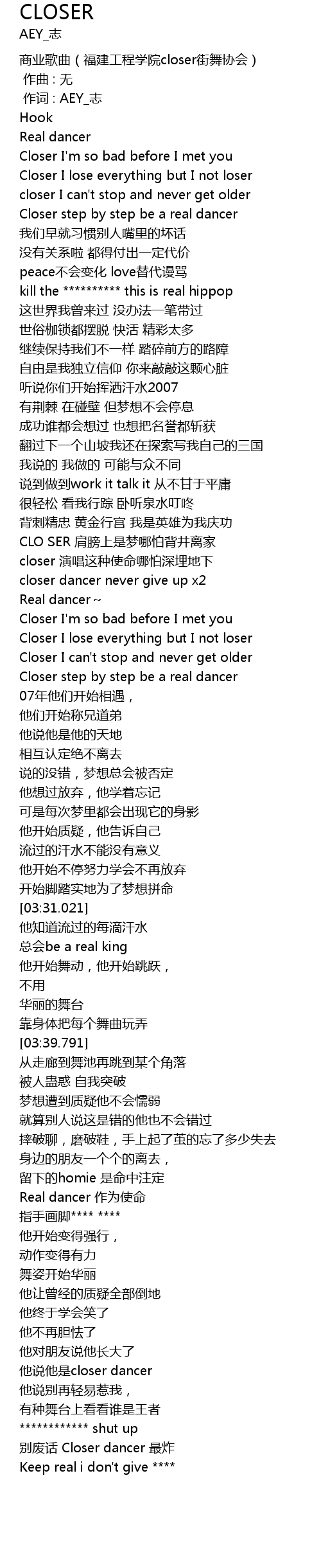 | [04:19.010] | 别废话 Closer dancer 最炸 |