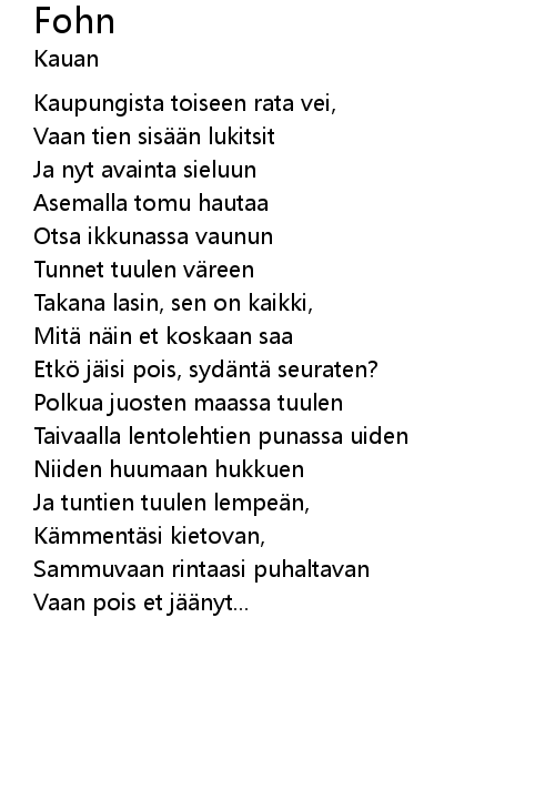 | Ja tuntien tuulen lempe n, | |