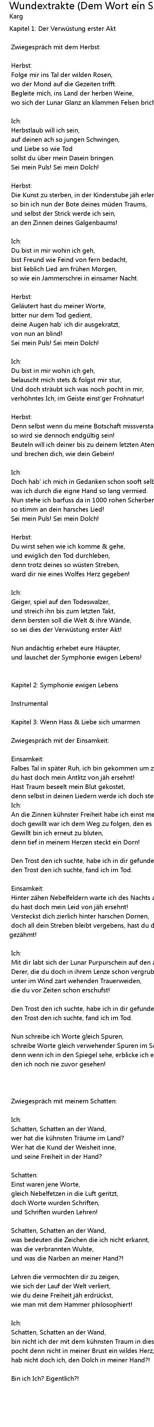 | Song | Wundextrakte (Dem Wort ein Schwert der Flamme die Narben) |