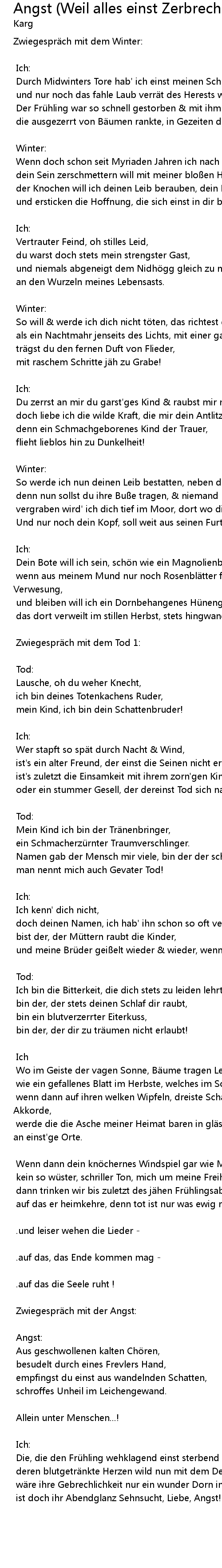 | oder ein stummer Gesell, der dereinst Tod sich nannte? | |