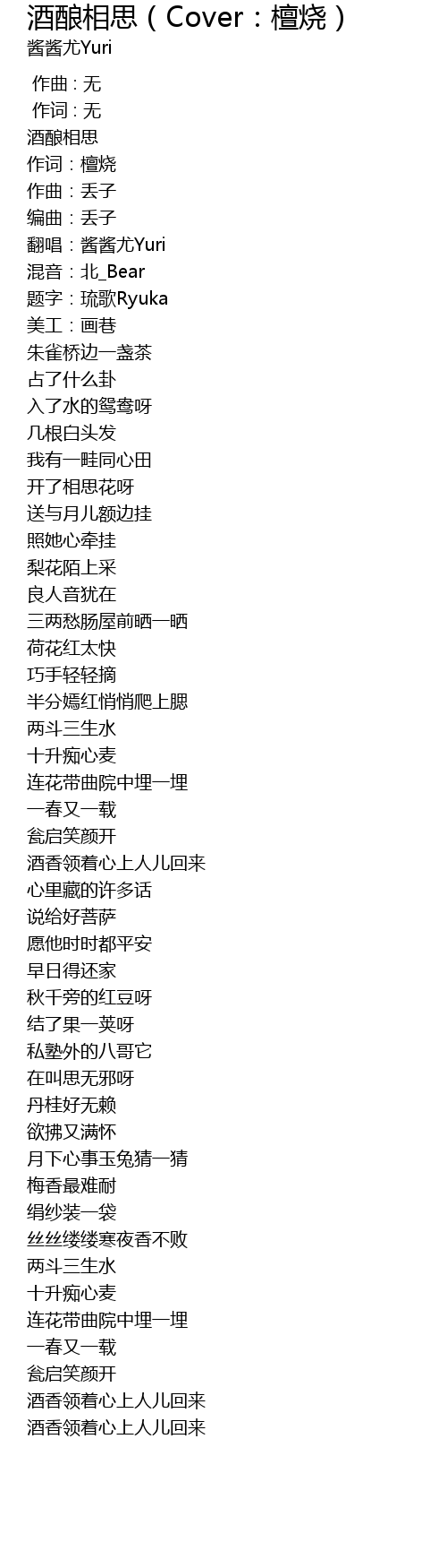 | [00:06.43] | 翻唱:酱酱尤Yuri |