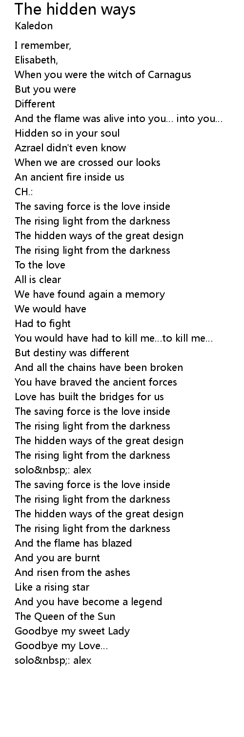 | Song | The hidden ways |