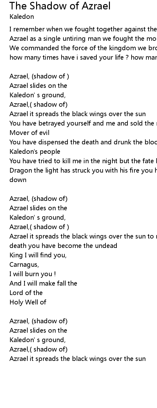Azrael it spreads the black wings over the sun to return to the life after the death you have become the undead |