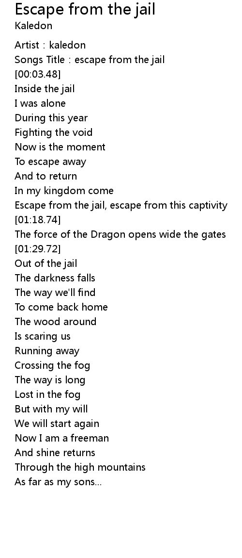 | [01:09.08] | Escape from the jail, escape from this captivity |