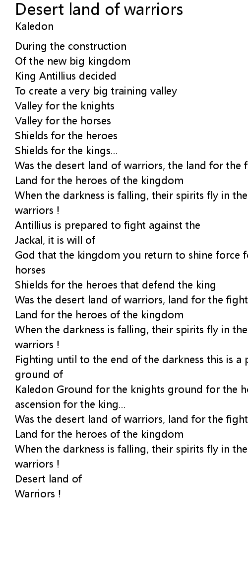 Kaledon Ground for the knights ground for the horses glory for the heroes ascension for the king...