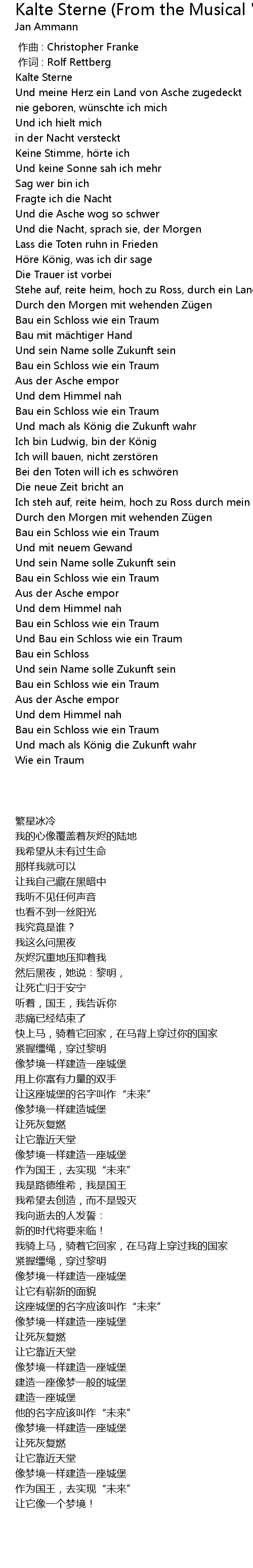 | Song | Kalte Sterne (From the Musical "Ludwig²") |