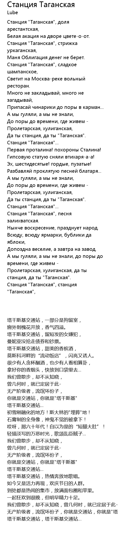 Пролетарская, хулиганская, да ты станция, да ты "Таганская". |