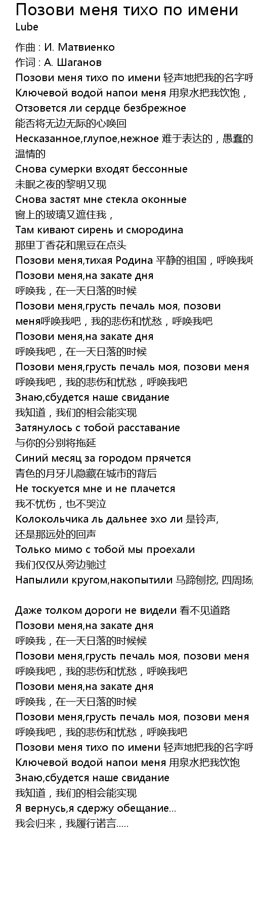| Позови меня,грусть печаль моя, позови меня呼唤我吧,我的悲伤和忧愁,呼唤我吧 | |