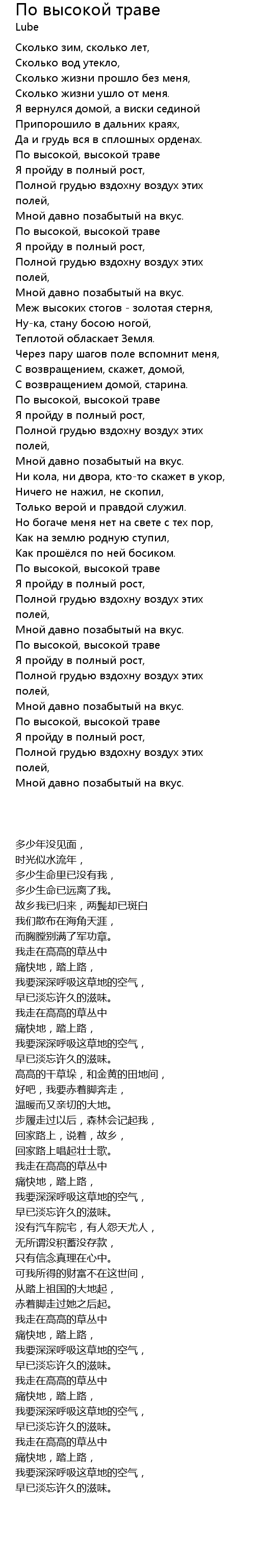 Song По высокой траве