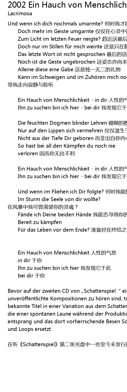 | Im Sturm die Seele von dir wollte? 在风暴中我可曾渴望你的灵魂? | |