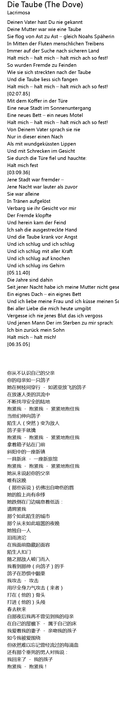| [01:51.29] | Wie sie sich streckten nach der Taube |