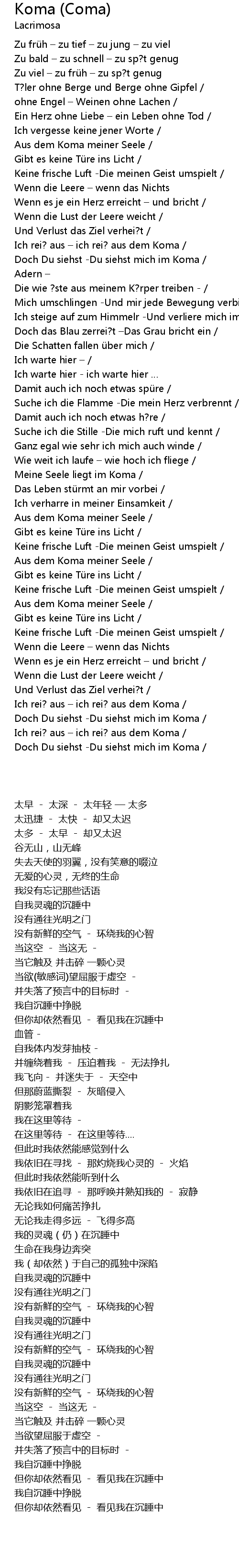| [05:11.810] | Meine Seele liegt im Koma |