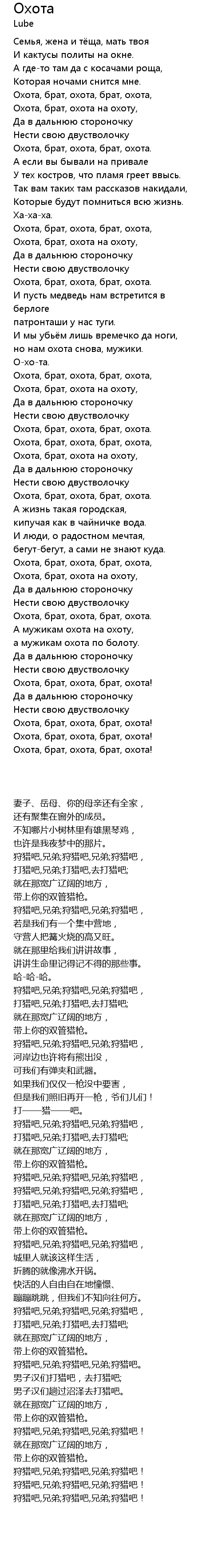Охота  Lyrics