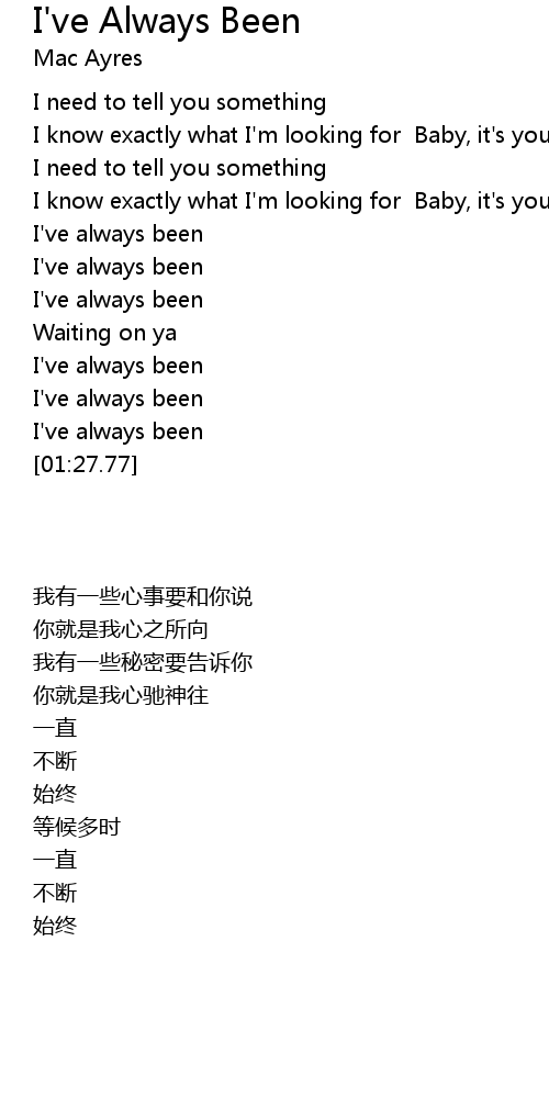 | [00:51.50] | I know exactly what I'm looking for Baby, it's you |