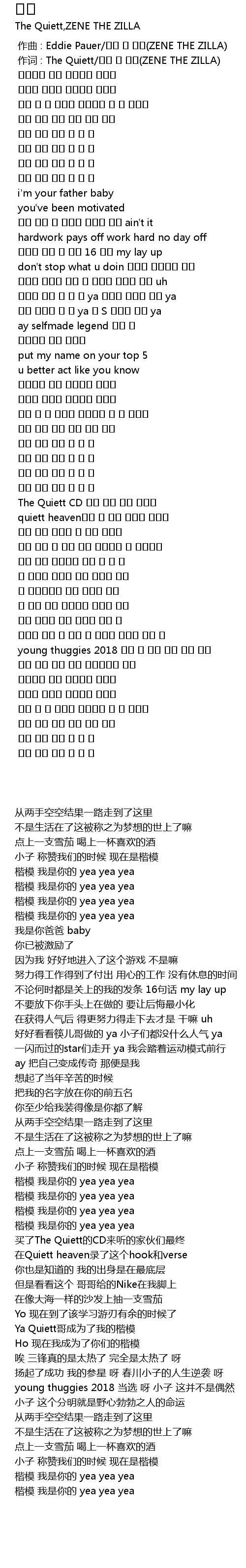 | [00:01.000] | zuo ci : The Quiett ZENE THE ZILLA |