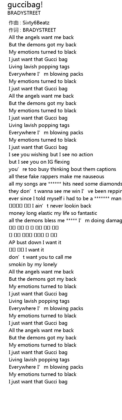 | [00:42.320] | all my songs are ****** hits need some diamonds on my wrist |