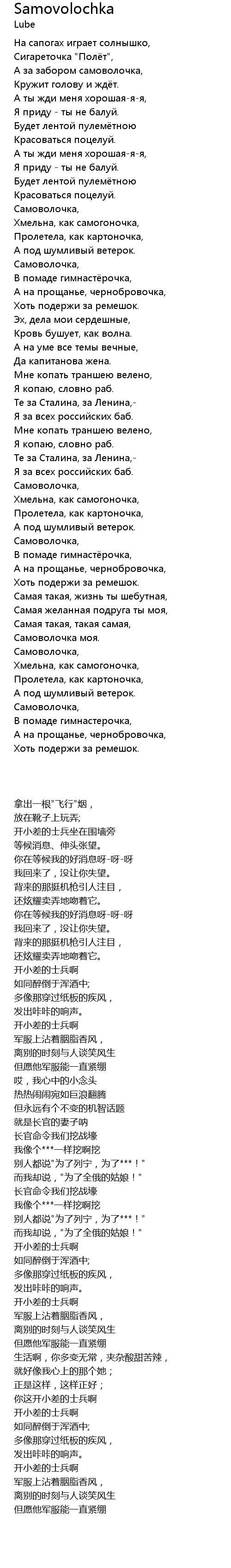 А за забором самоволочка, |
