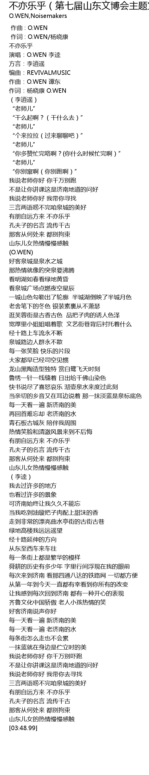 | Album | 不亦乐乎(第七届山东文博会主题宣传推广曲) |