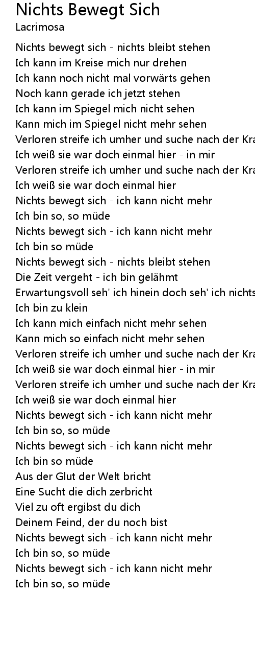 | Verloren streife ich umher und suche nach der Kraft in mir | |