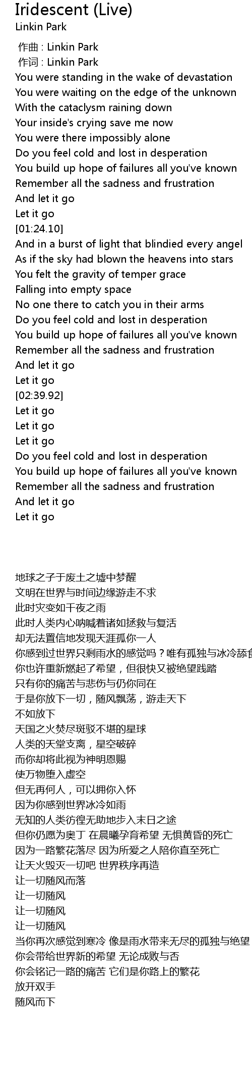 | [02:01.02] | Do you feel cold and lost in desperation |