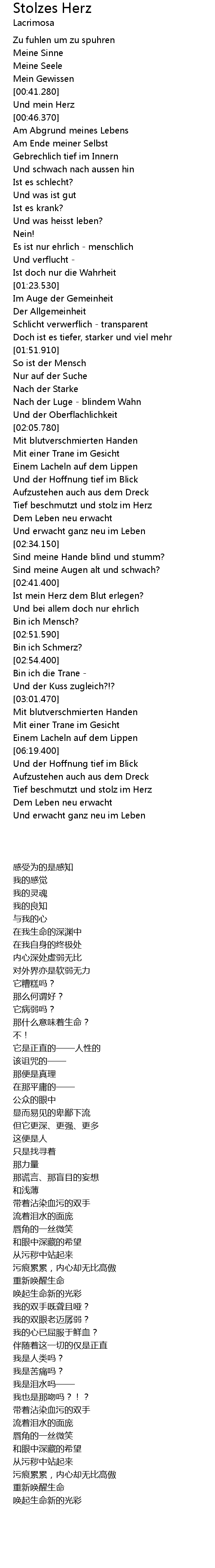 | [02:23.380] | Tief beschmutzt und stolz im Herz |