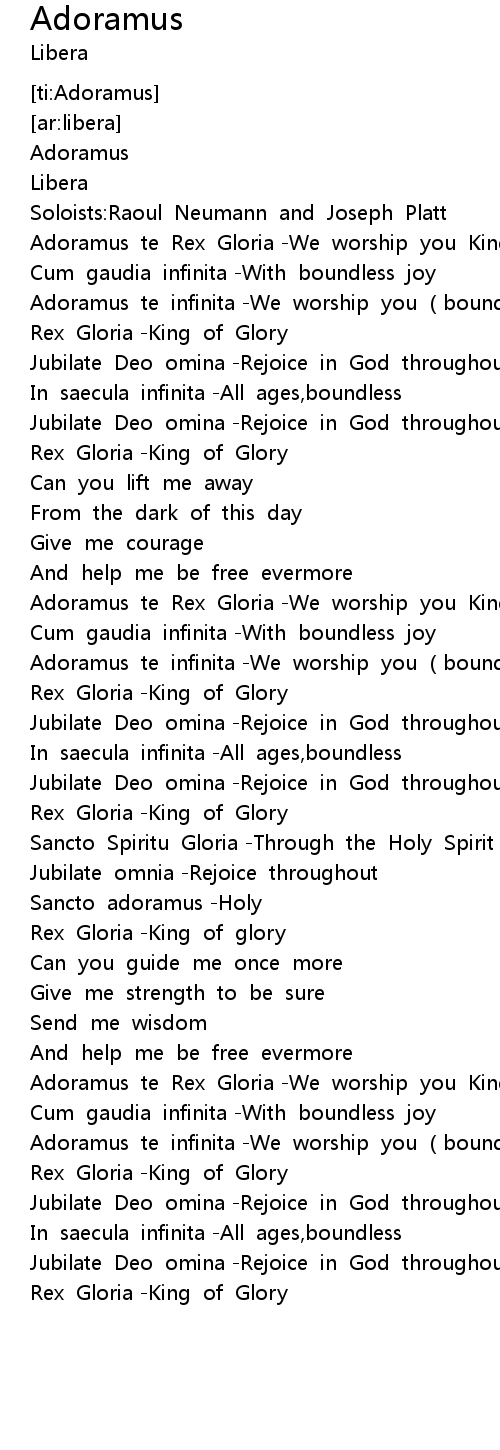 | [00:36.12] | Adoramus te Rex Gloria We worship you King of glory |
