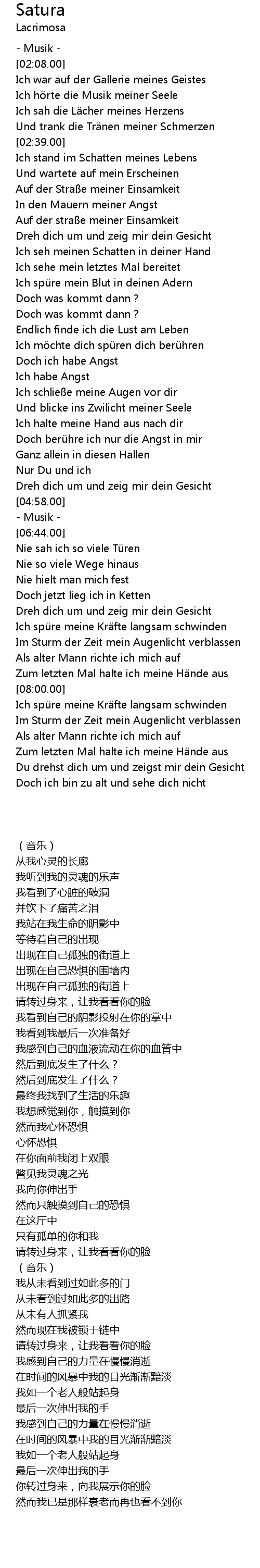 | [04:20.69] | Und blicke ins Zwilicht meiner Seele |