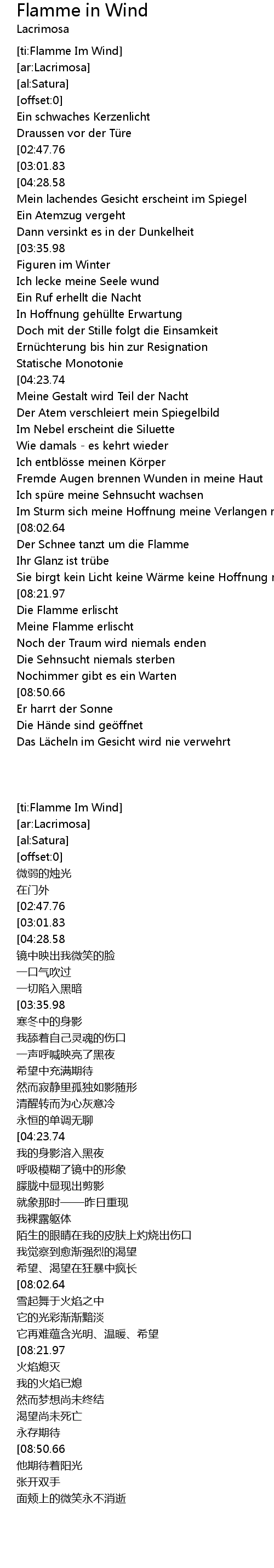 | [02:52.61][03:01.83] | Mein kleines Lebenslicht - eine Flamme im Wind |