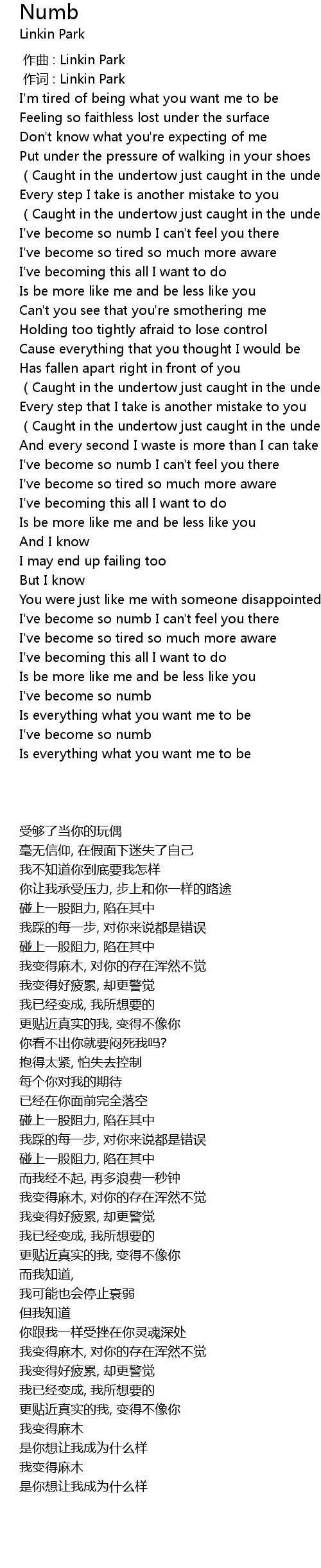| [00:01.00] | 作词 : Linkin Park |