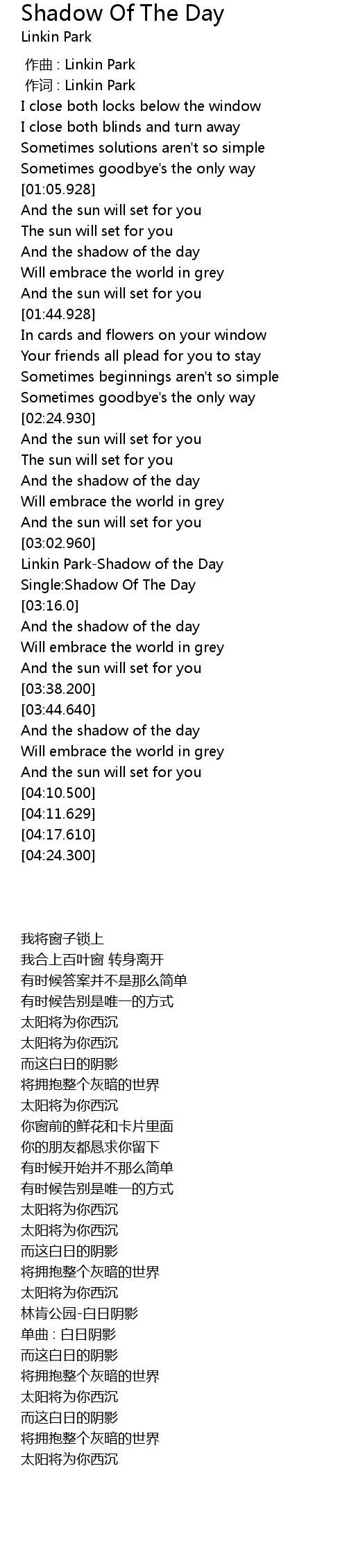 | [03:03.800] | Linkin Park-Shadow of the Day |