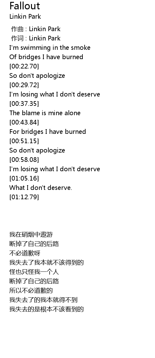 | [00:01.00] | 作词 : Linkin Park |