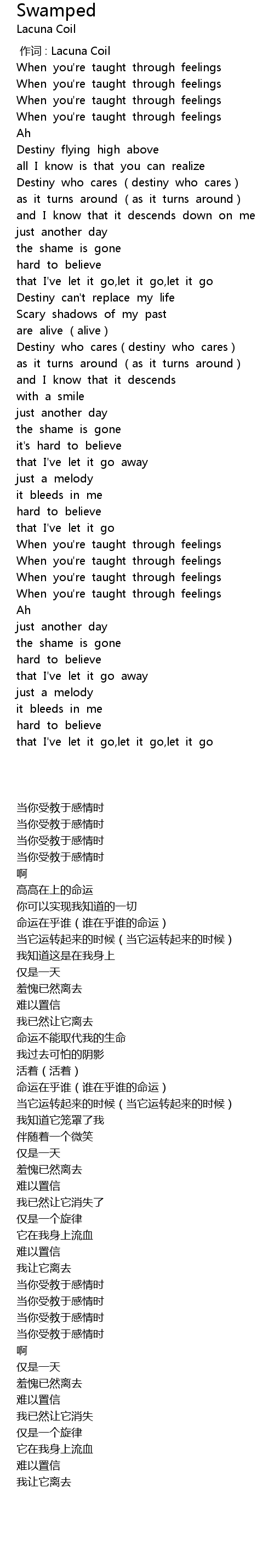 | [00:00.00] | 作词 : Lacuna Coil |