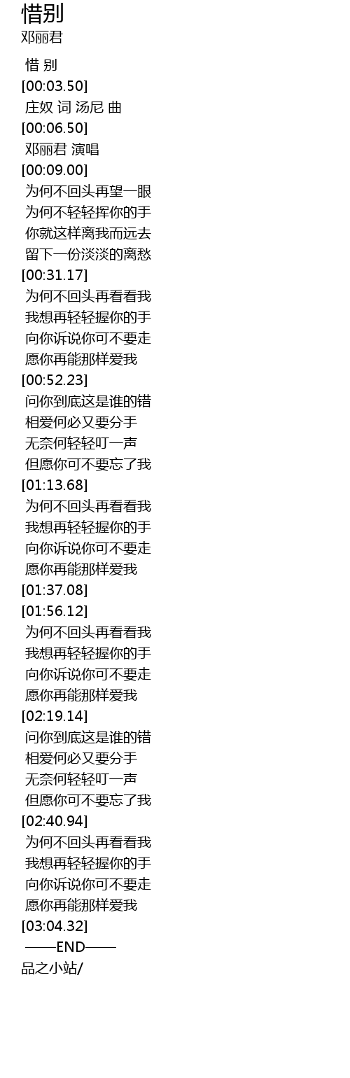 | [00:15.35] | 为何不轻轻挥你的手 |