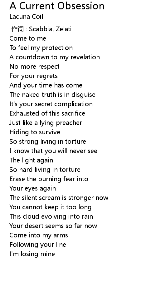 | Song | A Current Obsession |