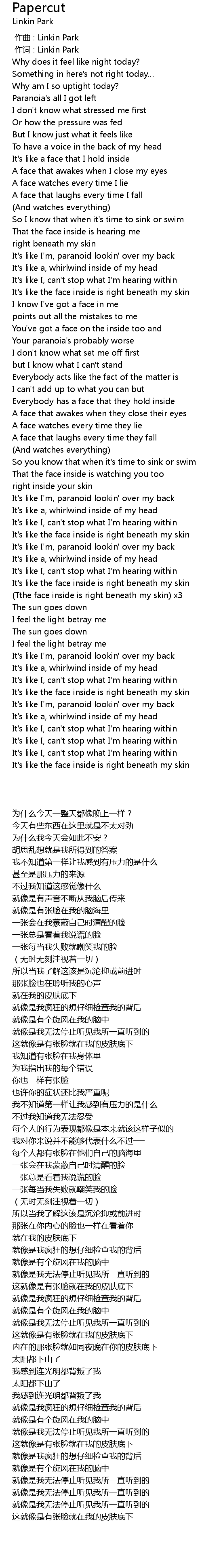 | [00:00.00] | 作曲 : Linkin Park |