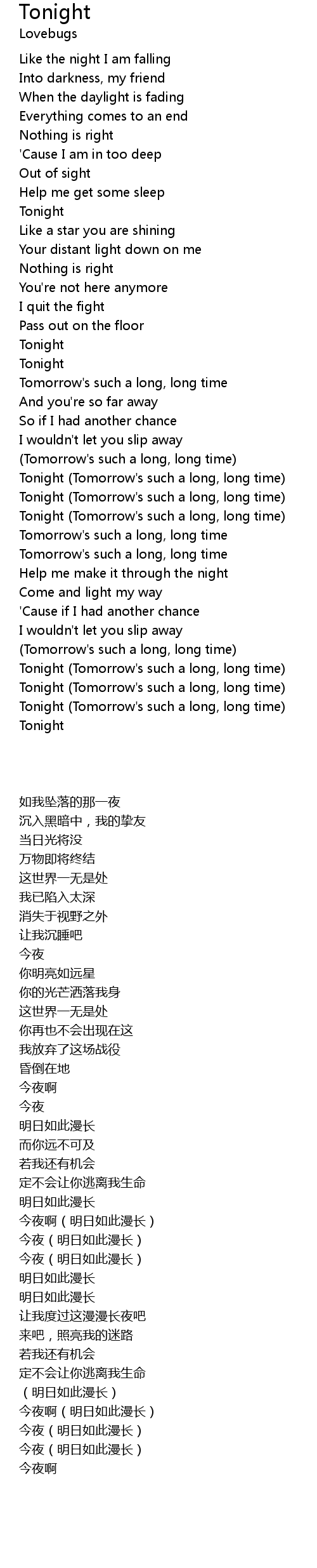 Tonight (Tomorrow's such a long, long time) |