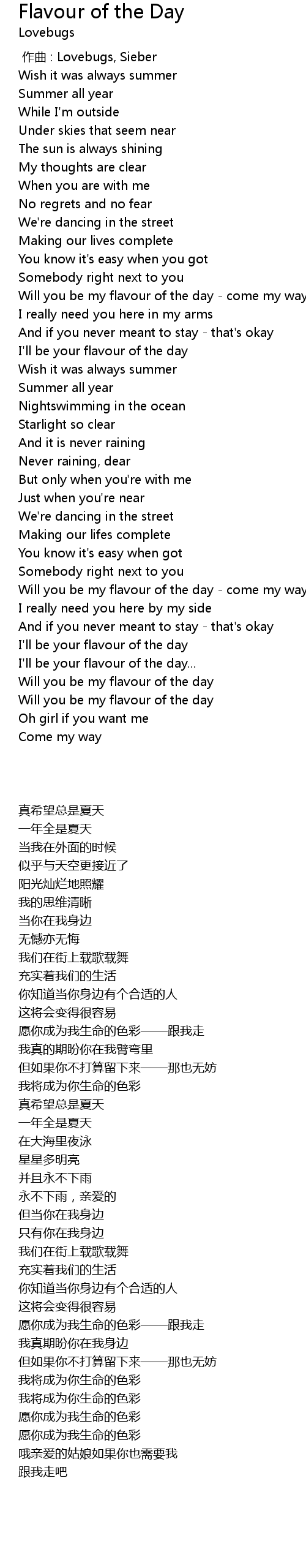 | [01:46.95] | Will you be my flavour of the day - come my way |