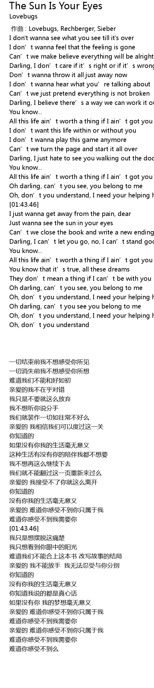 | [01:52.20] | Just wanna see the sun in your eyes |