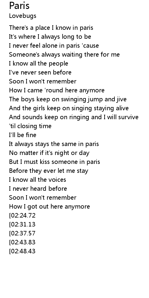 | [01:40.95] | It always stays the same in paris |