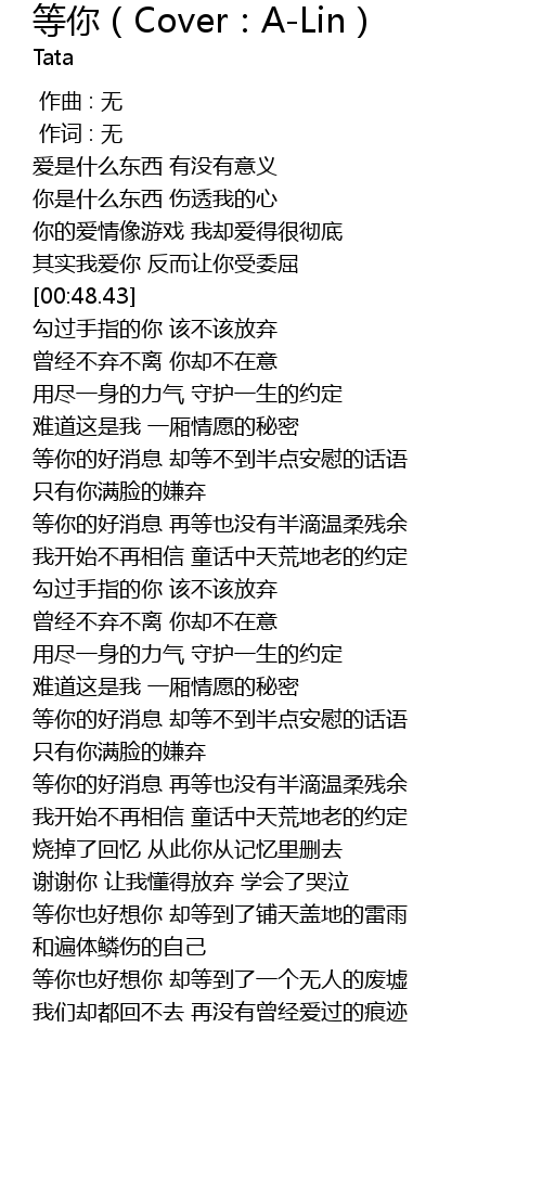 | [00:42.76] | 其实我爱你 反而让你受委屈 |