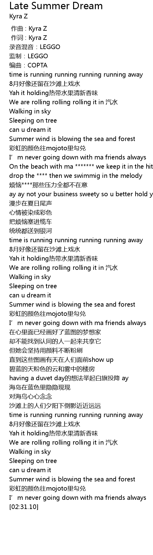 | [00:51.67] | 漫步在夏日尾声 |