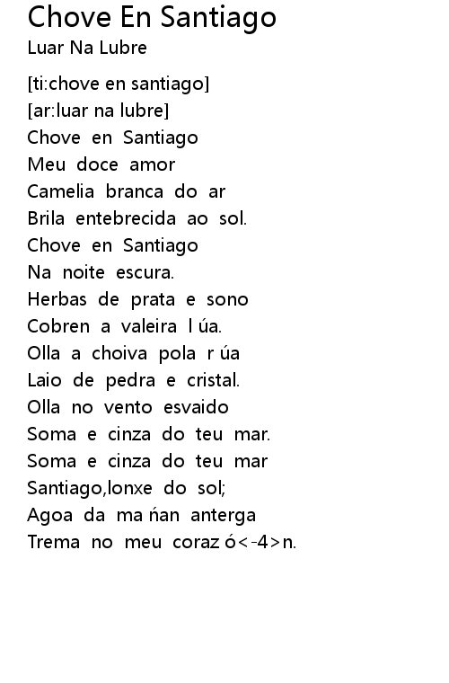 | [00:53.07] | Chove en Santiago |