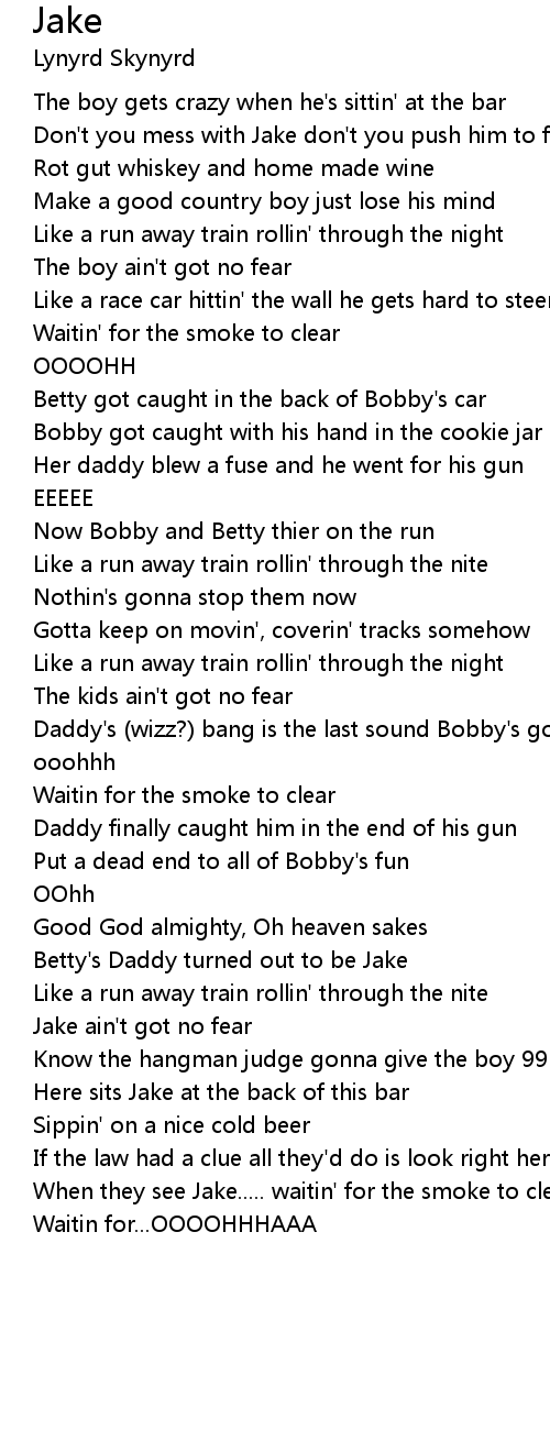 When they see Jake..... waitin' for the smoke to clear |